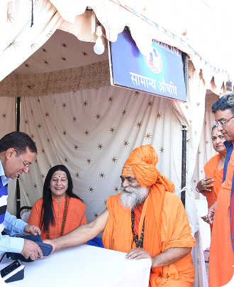 Sadhus and senior practitioners offer spiritual and traditional wellness guidance. This includes blessings, simple healing practices, and health-related counsel tailored to individual needs.